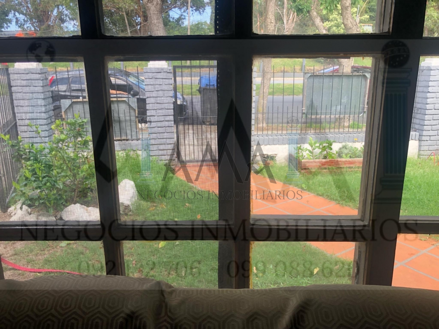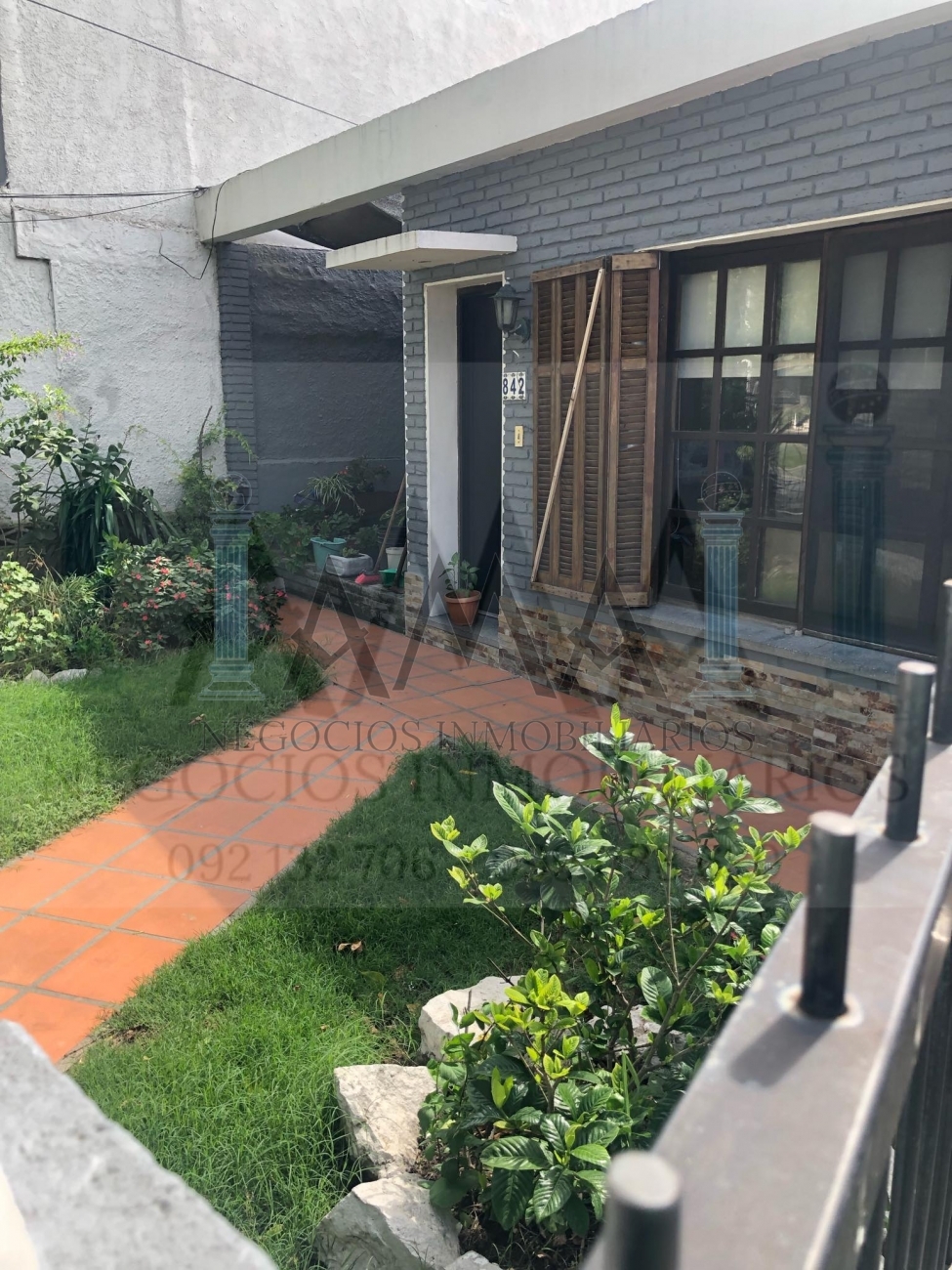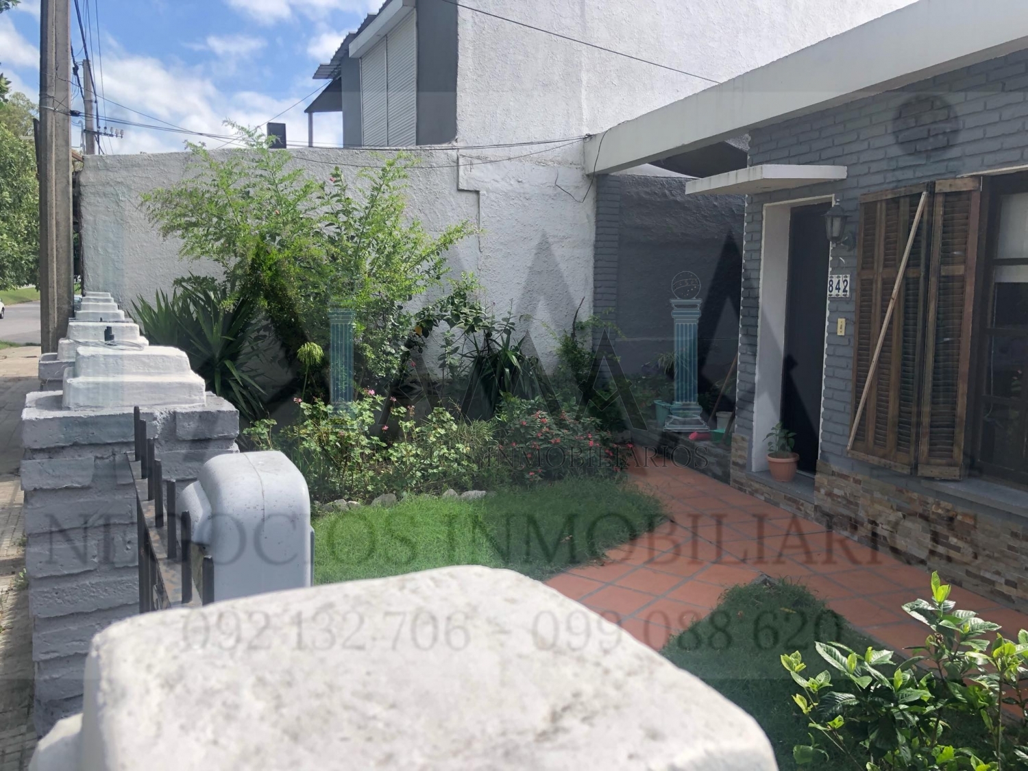 Patio al frente con amplio garage lateral. Frente con rejas.