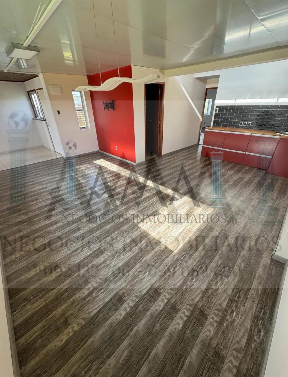 En el centro de la propiedad cuenta con amplio living cocina comedor con aire acondicionado inverter de 18.000 btu, baño completo, un dormitorio más sin terminar, destinado a galpón interno, lavadero y sala al ingreso.