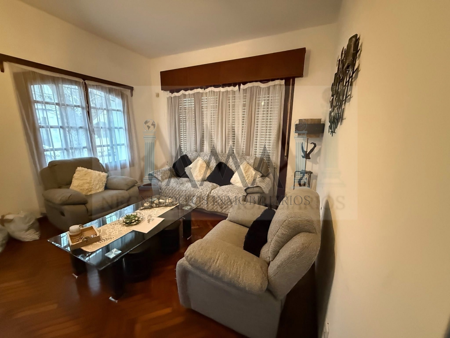 Cuenta con una casa principal muy amplia y cómoda. Al ingreso encontramos amplio living recibidor, luego pasillo de distribución con 2 dormitorios, uno de ellos con baño en suite, finalizando con amplio comedor cocina con barra pasaplatos. Pisos y mobiliario de primer nivel. Al fondo amplio terreno con parrillero.